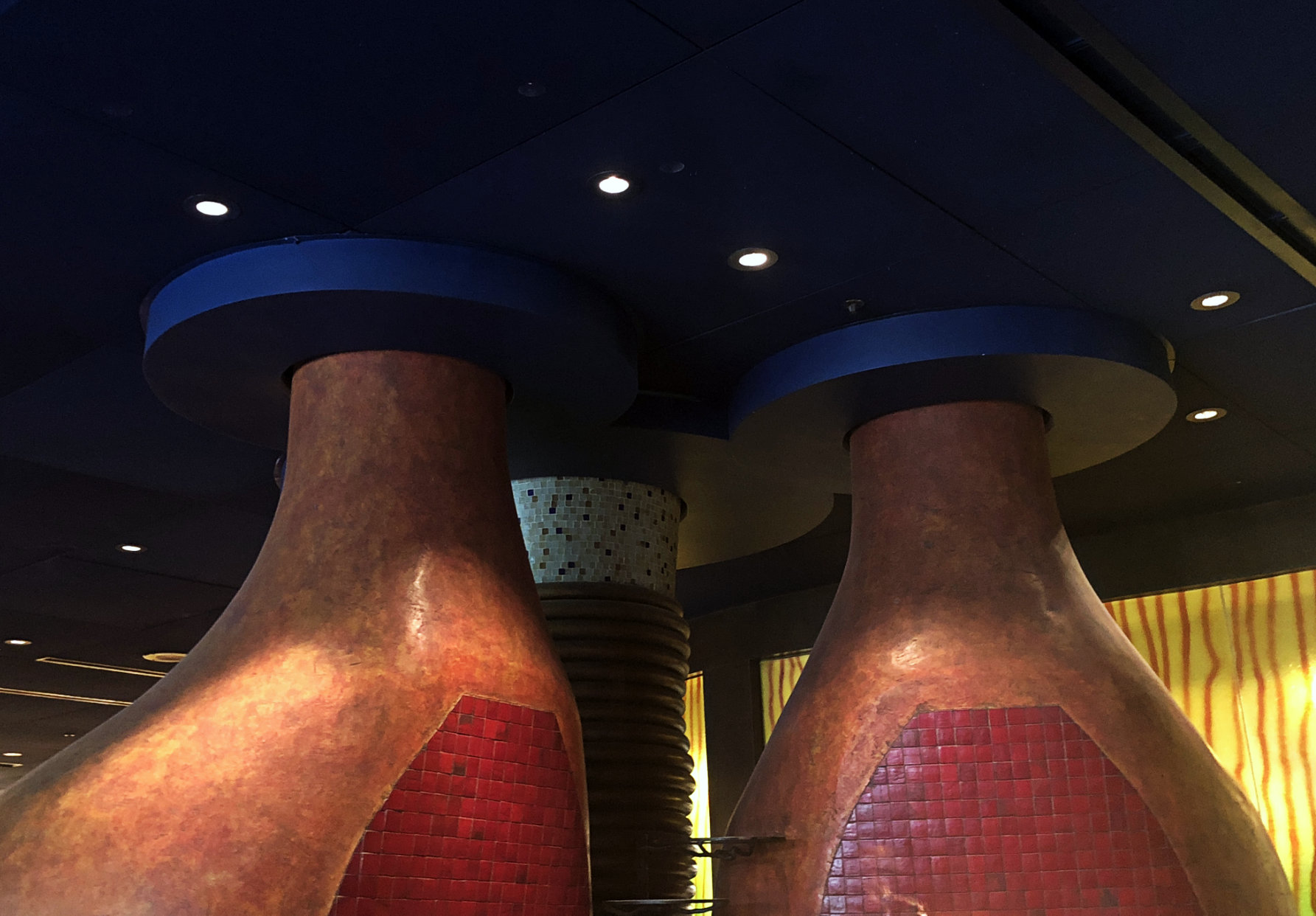 Boma is a table service buffet open for breakfast and dinner. Our first Hidden Mickey to find is one the book considers A Real Tuffy, which “earmarks” the hardest-to-spot Hidden Mickeys. I was there during lunch time so the restaurant was no longer open, but a very nice Cast Member let me in to look around. In order to see this Hidden Mickey a special light needs to be on. When the Cast Member realized what I was looking for she quickly turned on that light for me. Without that light the Hidden Mickey really is a toughie.