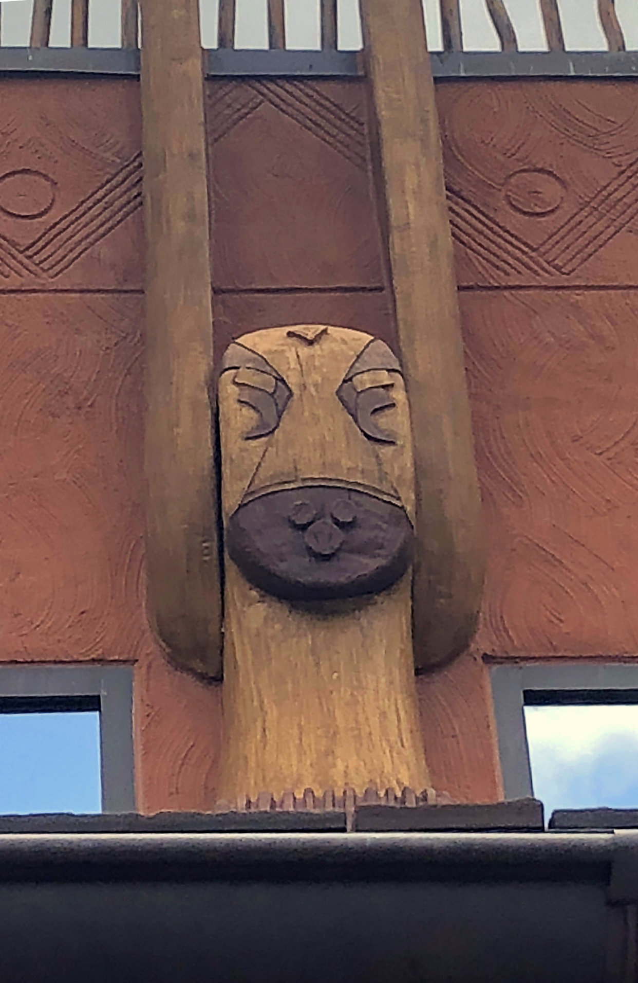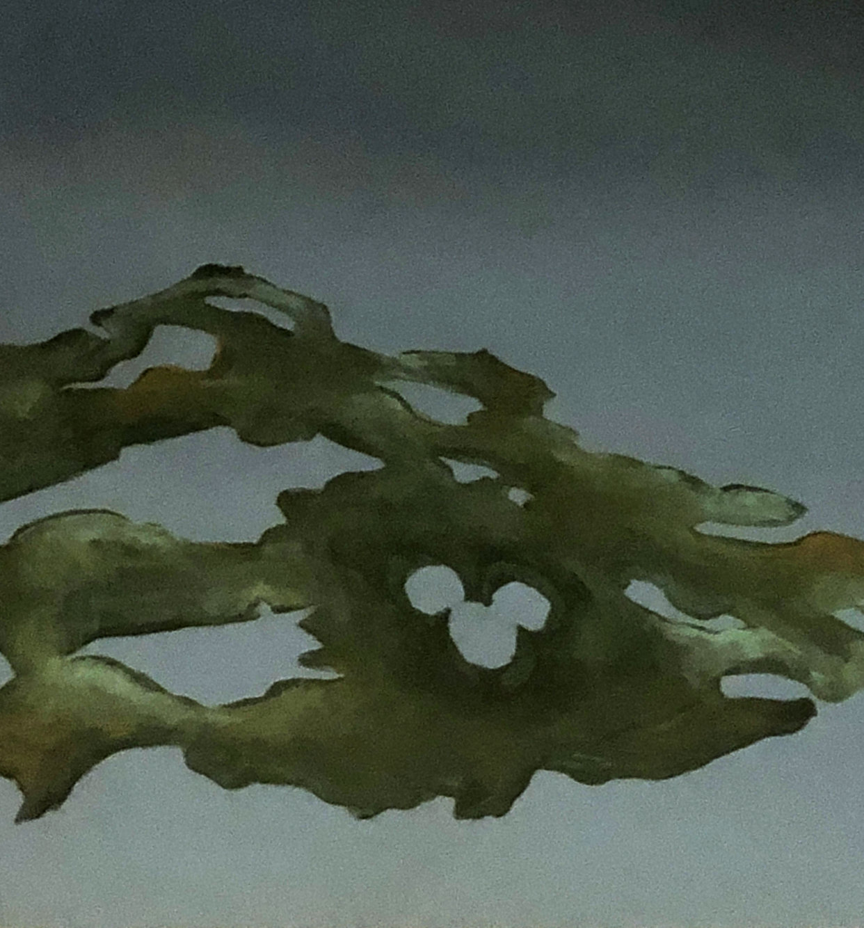 Next I went back to the entrance of the resort where we have two Hidden Mickeys. The first one is located on one of the faces of the ceremonial figures of the resort’s facade. The next one is just inside the resort to the right in the mural featuring a lizard. On the lizard’s back is where you will find this Hidden Mickey.