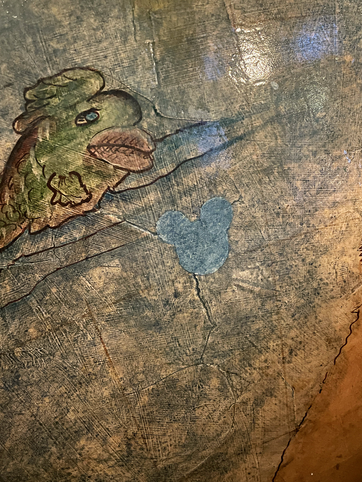 The next Hidden Mickey can be found on the globe, inside the lobby. This one can be tricky to spot, but you are able to rotate the globe. Located in the Southern Ocean, between the southeast tip of Africa and Antarctica, there is a sea serpent and a blue Hidden Mickey which blends in well.
