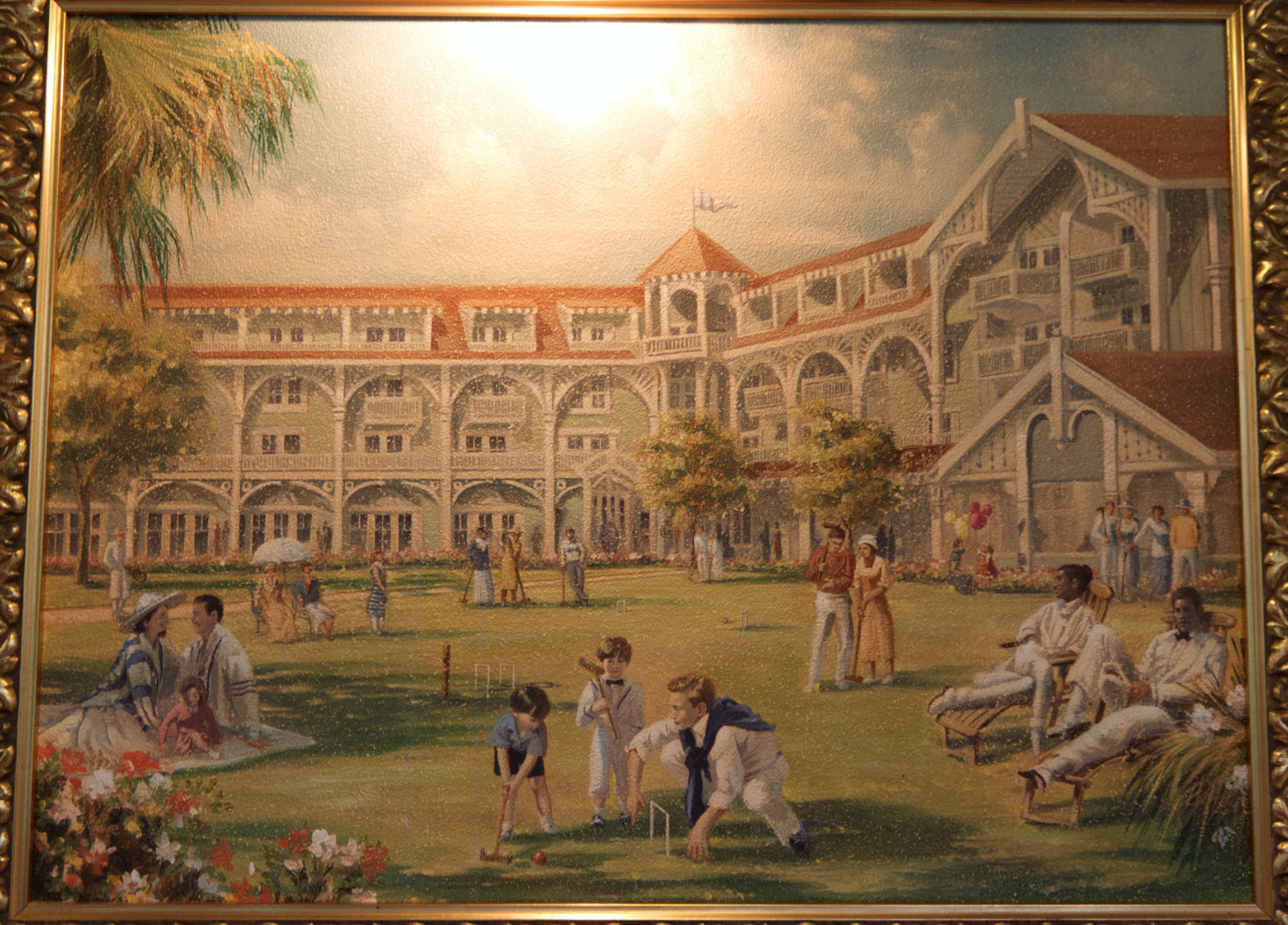 At the Beach Club Villas, there were quite a few Hidden Mickeys to be found. At Animal Kingdom Lodge, there were a multitude of Mickeys in the rock work. At the Beach Club Villas, there are many found in paintings. There is a beautiful mural in the Breezeway, which leads out to their quiet pool.