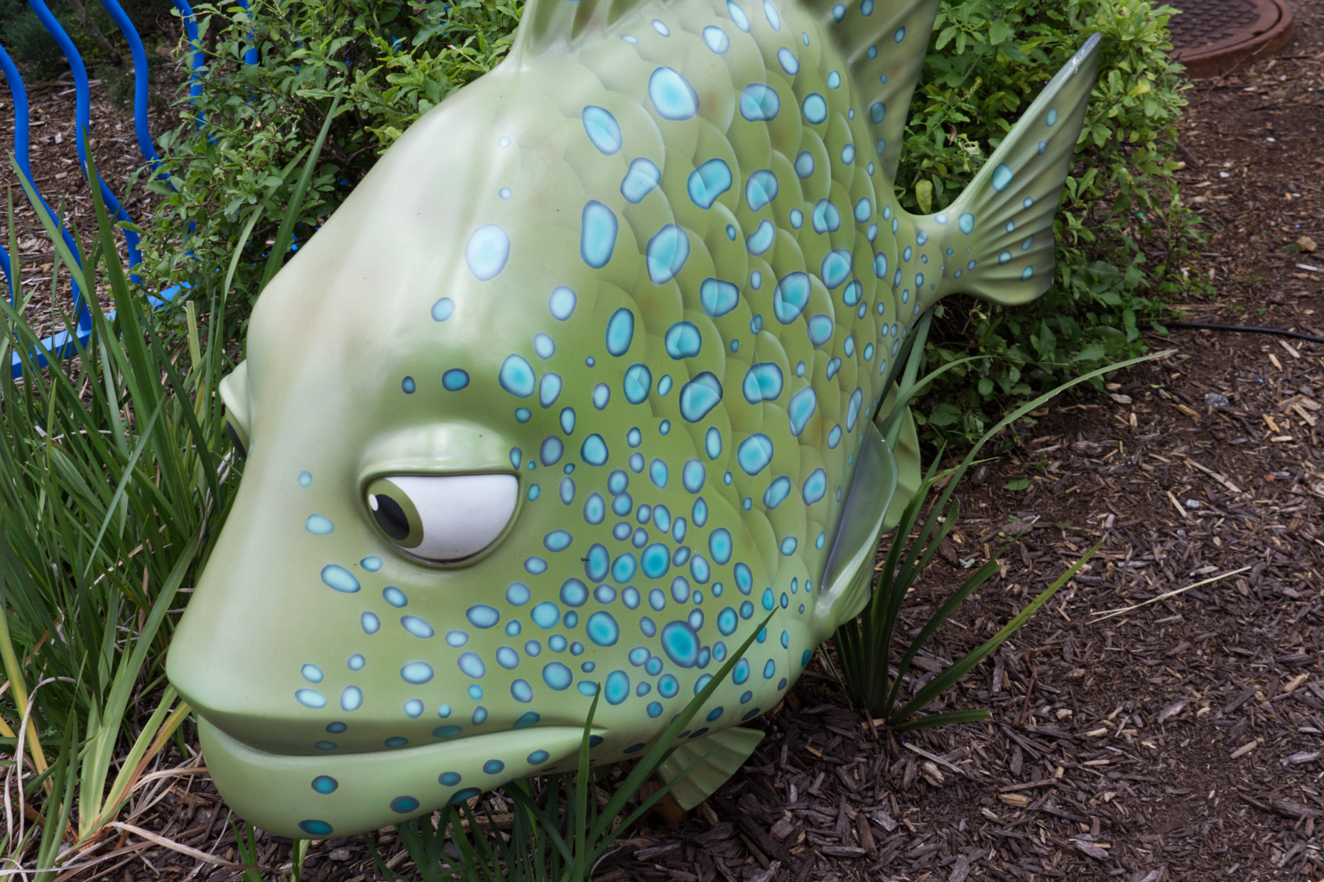 The Big Blue Pool, like “In the Big Blue World” from Finding Nemo, features the last Hidden Mickey at Art of Animation. Similar to the Hidden Mickey that used to be in the lobby, I had no issues finding this Hidden Mickey three years ago, but was unable to find it when I went a few weeks ago. Surrounding the pool, there are large fish that are part of the theming. On a green fish with blue circles, Mickey is supposed to be found on the backside. If you follow the line of the fish’s mouth on the right hand side you should be able to find it. I included two photos, the first showing the whole fish and the second is a close up of the Hidden Mickey to help you find it. It seems like the fish have been recovered and I was not able to find a Hidden Mickey anymore. While I was looking at this fish, I was asked by other guests if I was able to find a Hidden Mickey. While I understand covering the white benches in the main lobby as I can see that those could easily get dirty, I was disappointed to find this Hidden Mickey disappear.