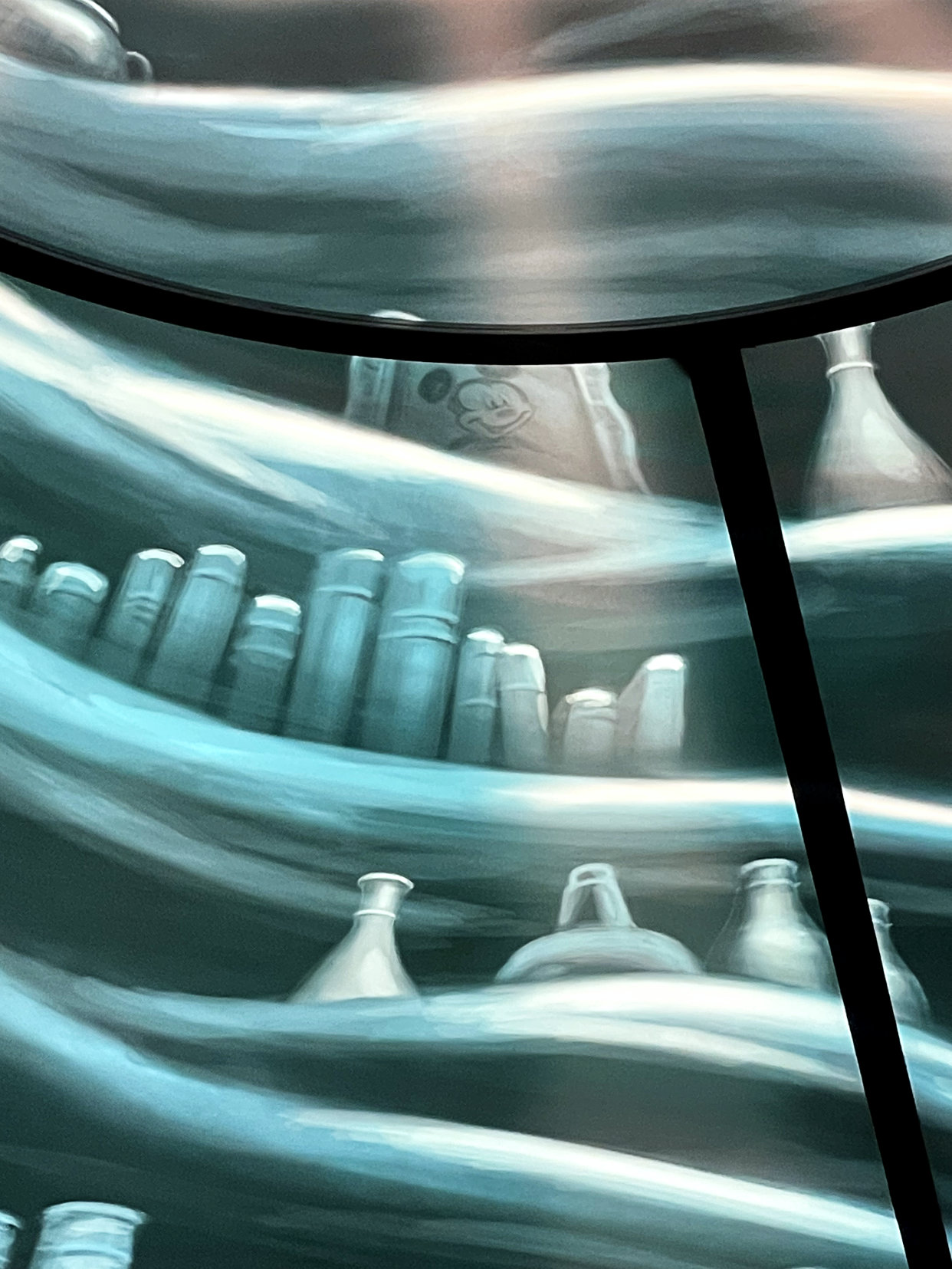 After leaving Landscapes of Flavors, I went back to the check-in area. The book depicts benches located across from the check-in desk that are white with black pencil tracings that form Hidden Mickeys. When I first went looking for Hidden Mickeys here three years ago, I was able to find these no problem. This time the benches seem to have been re-upholstered in the colors of the rainbow. I spoke with several Cast Members at this resort to determine when this change occurred. Two of the three Cast Members that I spoke to were not sure because they had only been at this resort for four months. The answer I received was that the benches changed over four years ago. I know this is not the case as I took my photo in the summer of 2018. The best answer I can give is that it occurred sometime in the last three years. Please enjoy my photo of another lost Hidden Mickey above, and below take a look at the current benches as well as more sketches along the walls.
