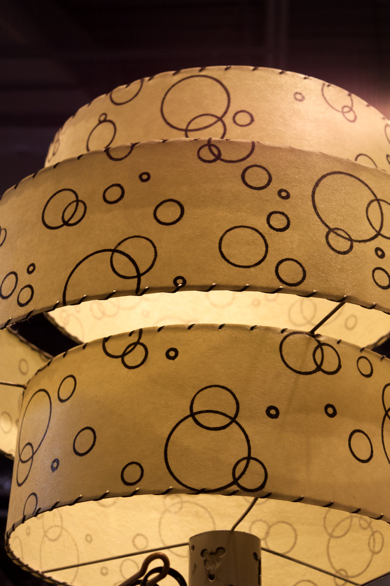 There is one bonus Hidden Mickey to be found! As you enter the food court from the gift shop, along the walls of the food booths there are circles. Some of these form a classic Mickey shape like the one above.