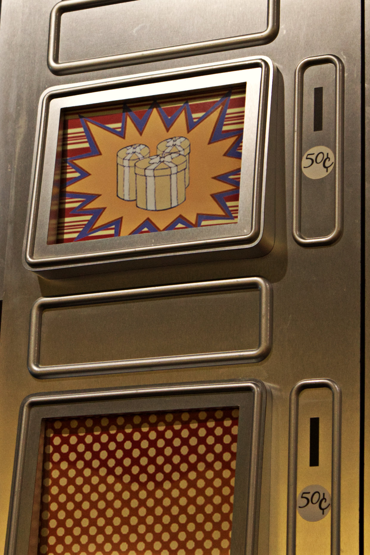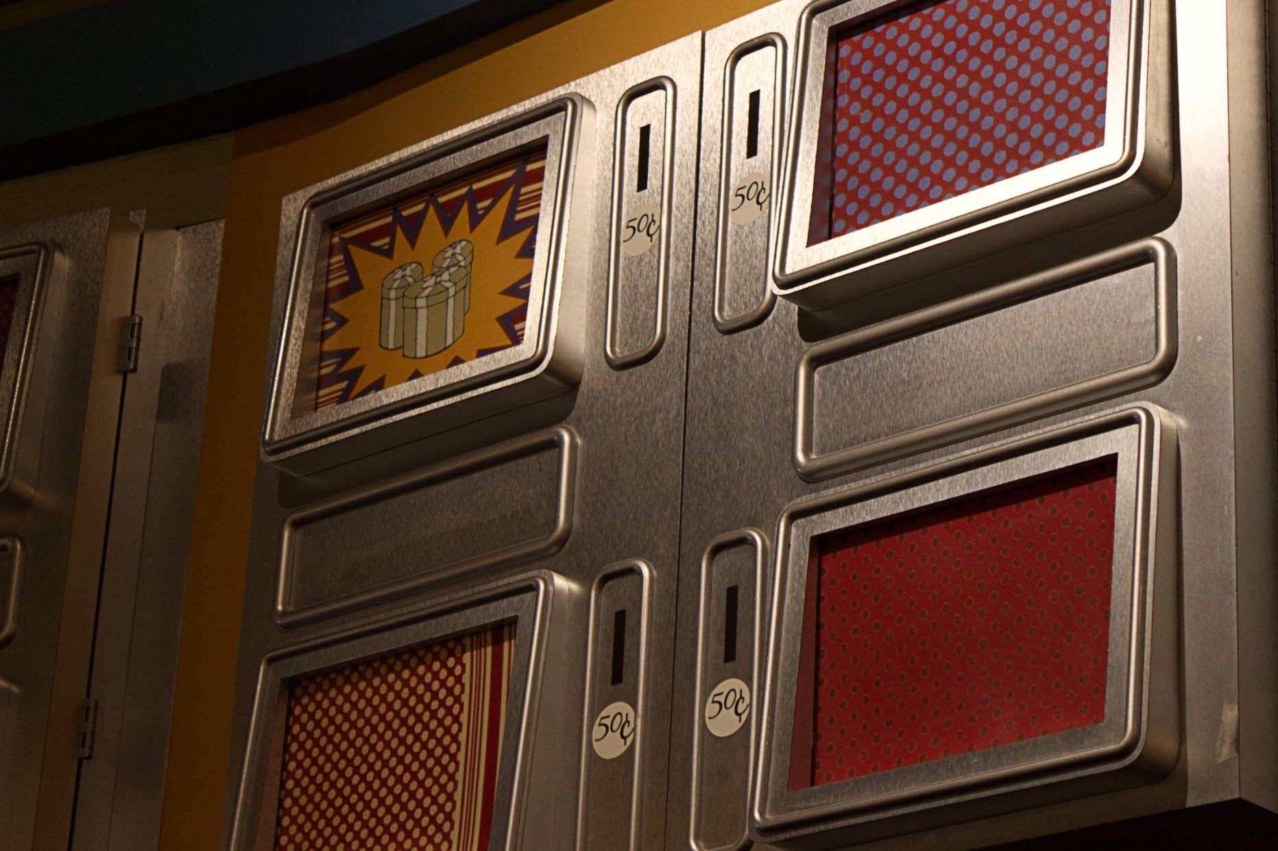 The first set of Hidden Mickeys listed in the book can be found in Everything POP Shopping & Dining, the store and quick service location in the Classic Hall lobby. In the store, Mickey can be found hiding on light fixtures, display racks, and I am not sure how to describe the third location. The book describes them as makeshift ovens or microwaves and the Hidden Mickeys app portrays them as faux package locker windows. All of these Mickeys are easy to find except for the the light fixture, which is no longer there.