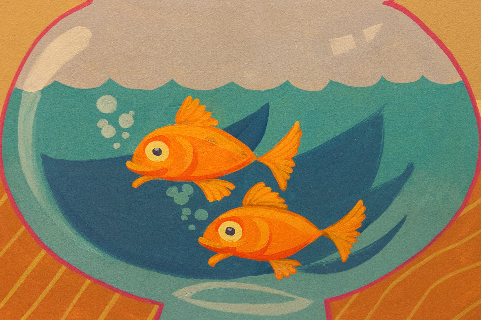 Our last stop in the lobby is the children’s area. Here kids can go to be entertained while their family checks in. On the wall, there is a mural that includes a fish tank and one of the bubbles inside resemble our favorite mouse. This photo is another example of why I’m glad I went back to take updated pictures because when I first went to Pop Century, this section was closed so I was unable to get the photo.