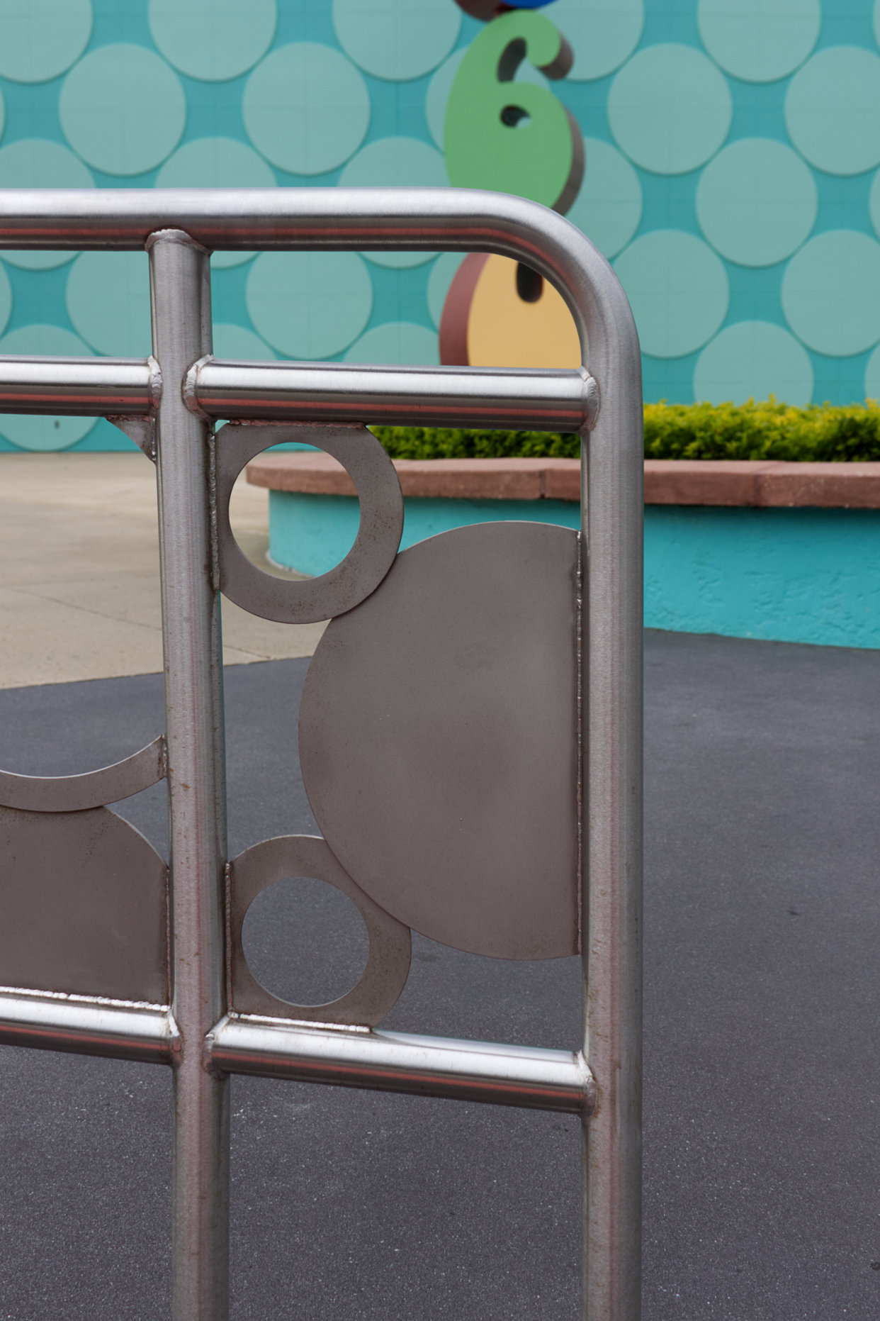 The last Hidden Mickey found at Pop Century is actually in front of Classic Hall by the bus stops. The guardrails have overlapping rings that form the shape of Mickey. If you are having difficultly seeing it, tilt your head to the left. This is so ingenious and I wonder why they do not have these on all of the railings for bus stops throughout property.