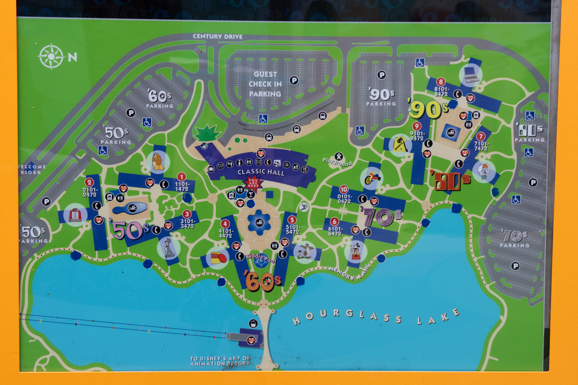 Looking back at all of the Hidden Mickeys at Pop Century, my favorite would have to be the computer screen icon in the 80s/90s section. This Hidden Mickey has so much more latent details regarding what Walt Disney World looked like in the 90s. Cinderella’s Castle was decorated as a cake for the 25th anniversary, Animal Kingdom was opening, and Hollywood Studios was still called MGM Studios. A lot has changed over the last 25 years Walt Disney World and its fascinating to look back at its history as well as think about what the next 25 years will look like.