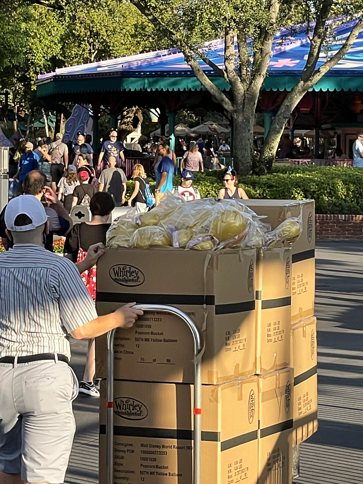 Popcorn buckets heading towards Fantasyland