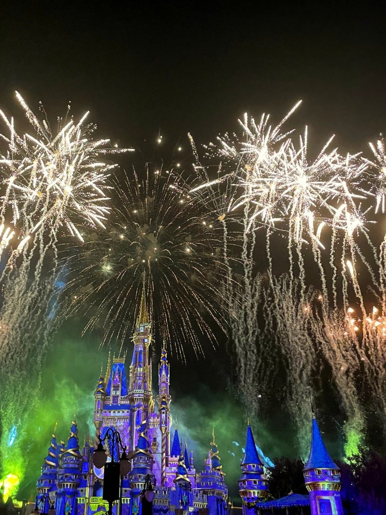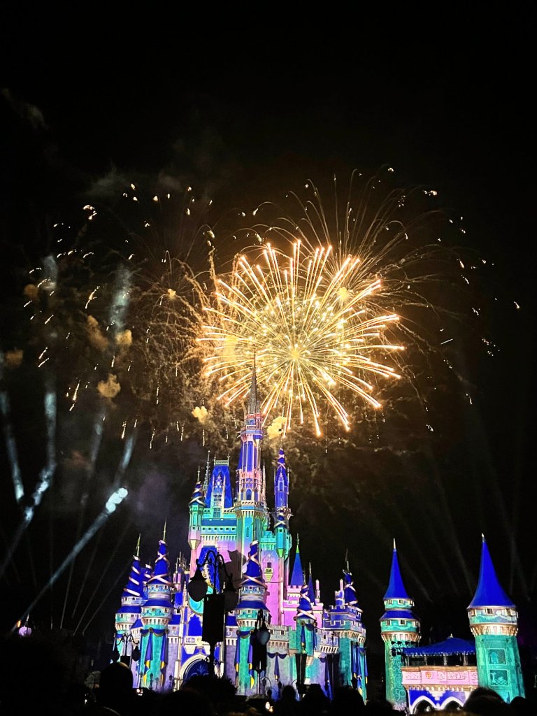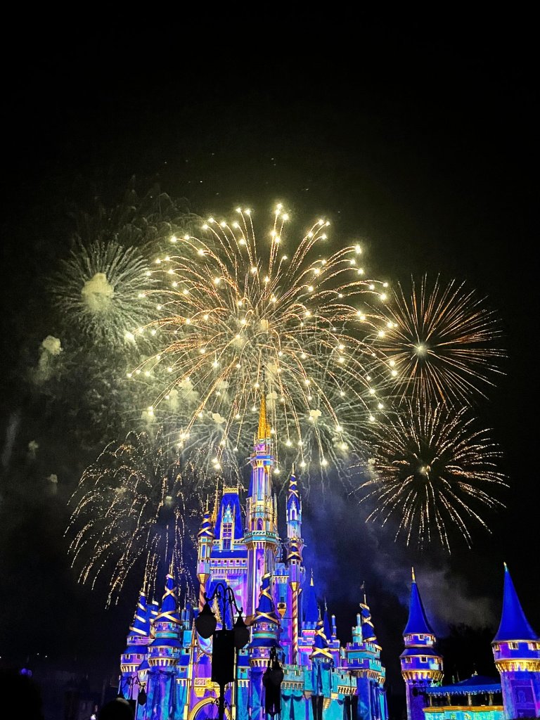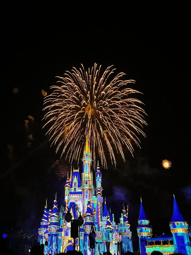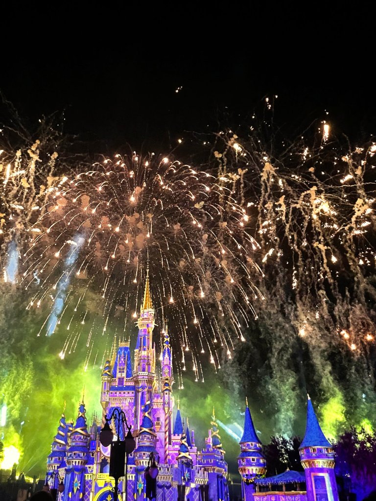 Lastly, we were able to watch the new fireworks show, Enchantment. While this show is no Happily Ever After, it is still a tear jerker I loved that they included some clips from more recent Disney films and Tinker Bell is still flying! Would it really be a fireworks show in the Magic Kingdom without Tinker Bell?