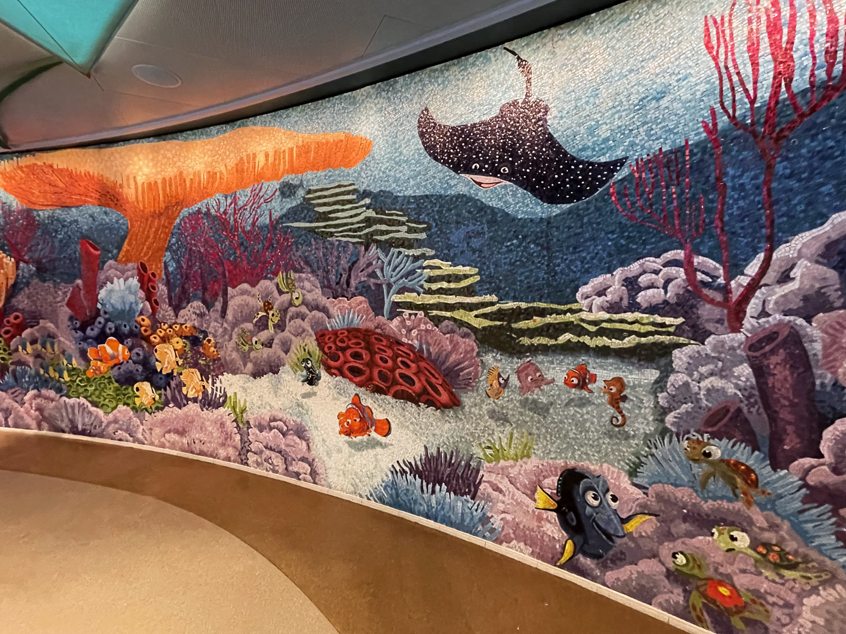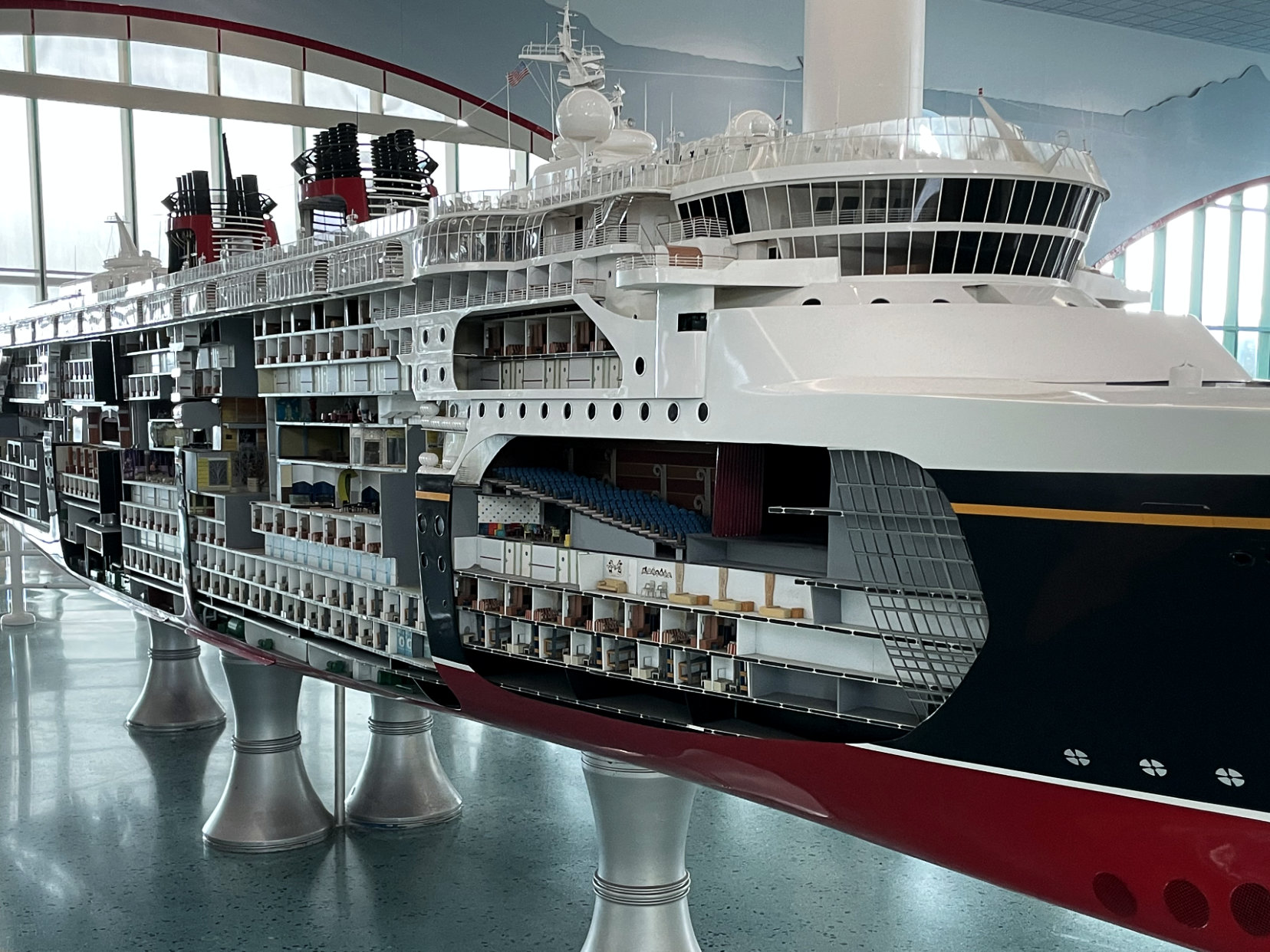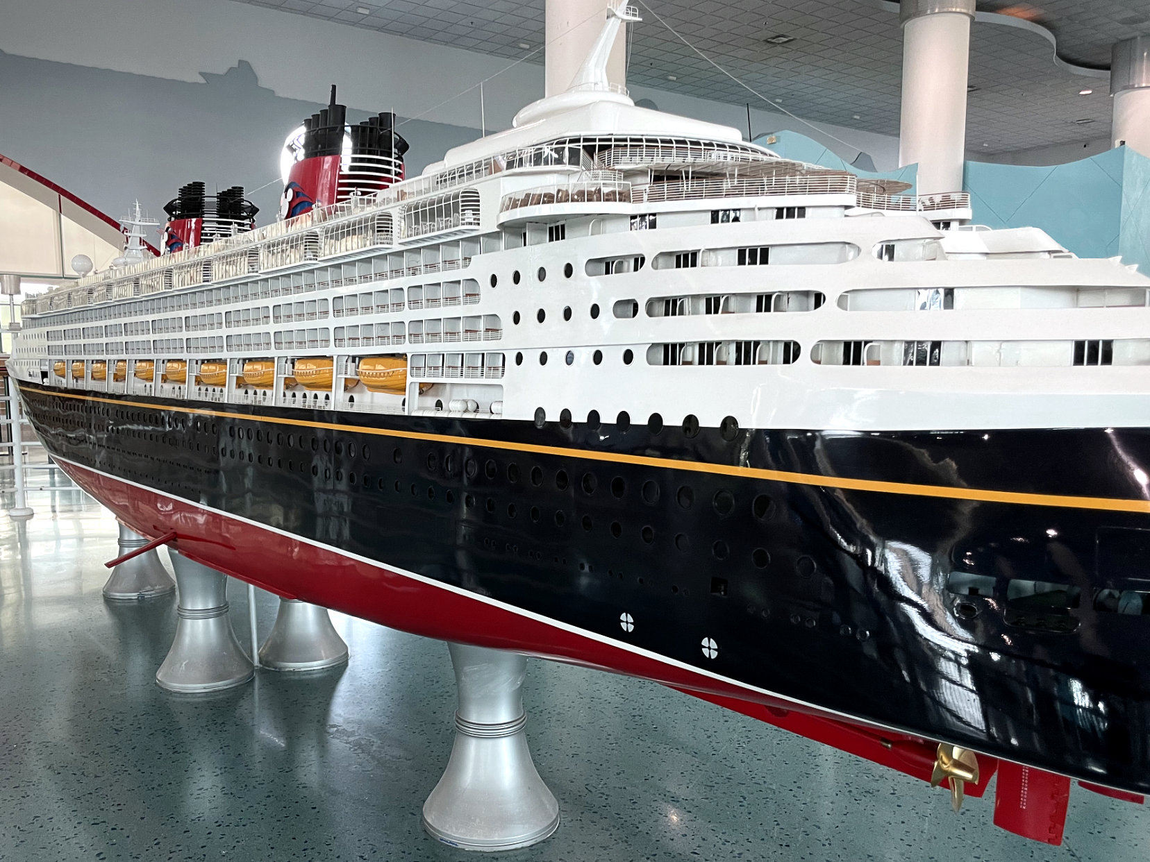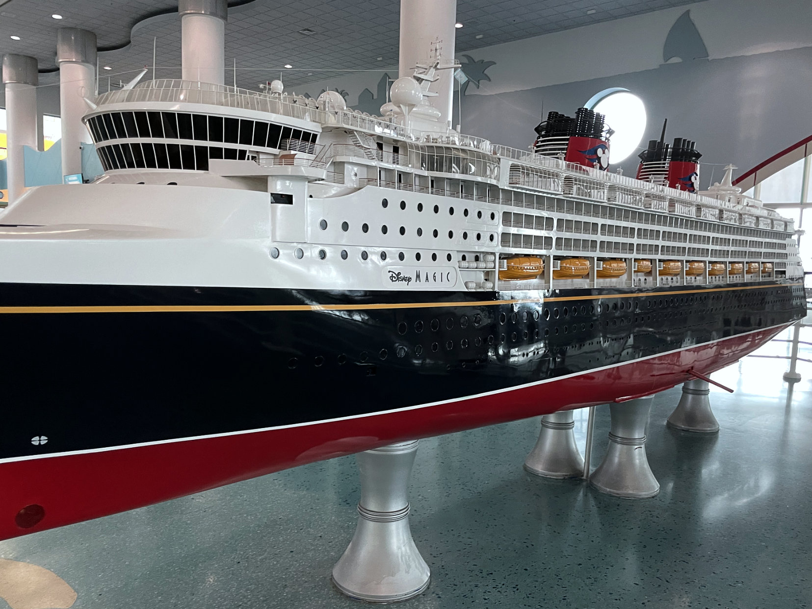 While we waited in the terminal, I was able to enjoy the map of the Caribbean that is depicted in the tiling and the model of one of the original ships, the Disney Magic.