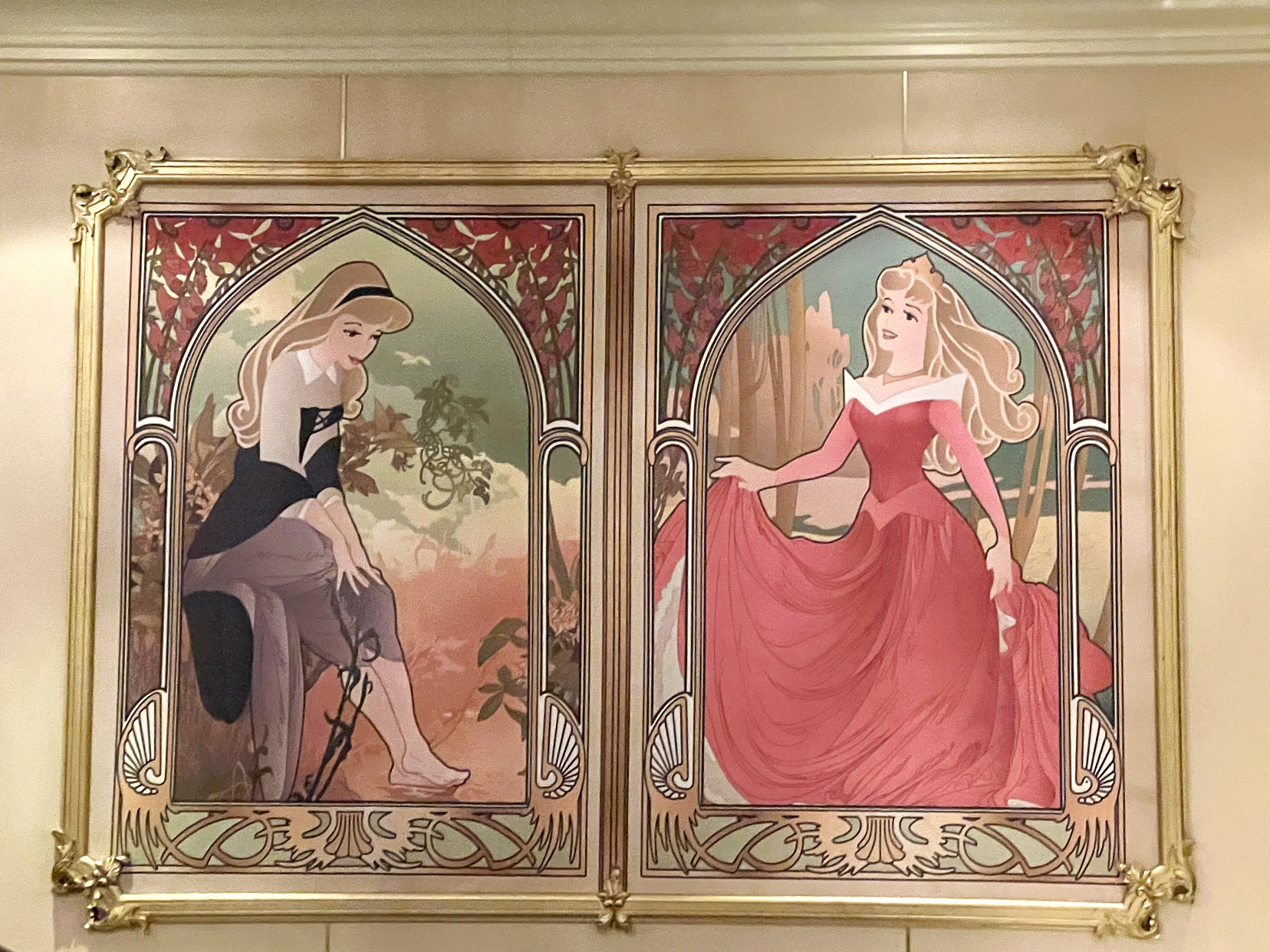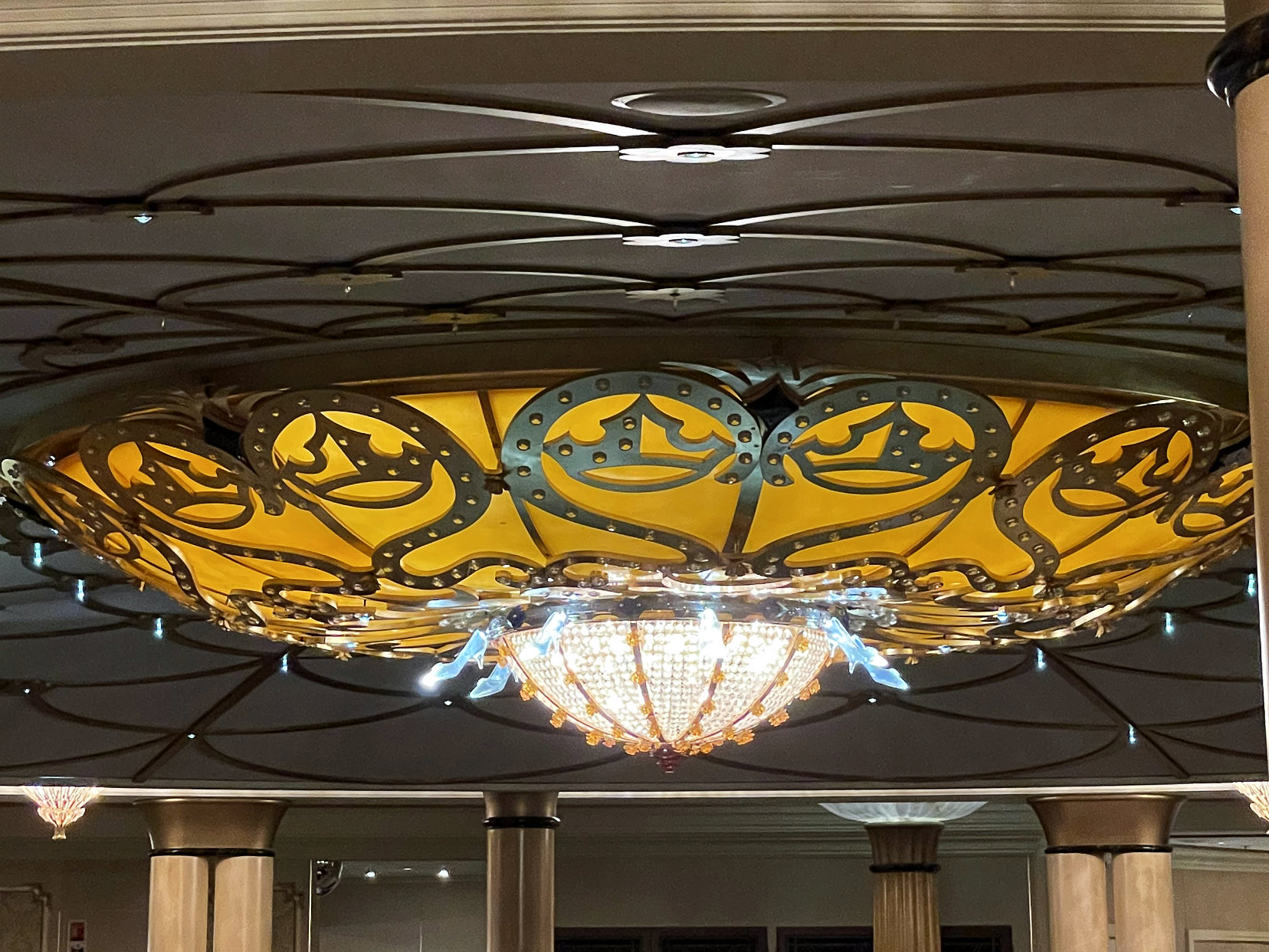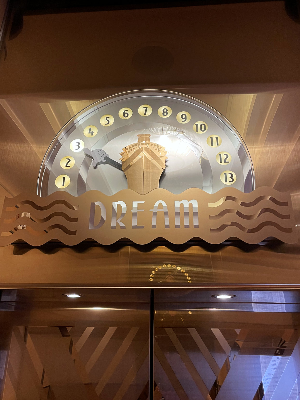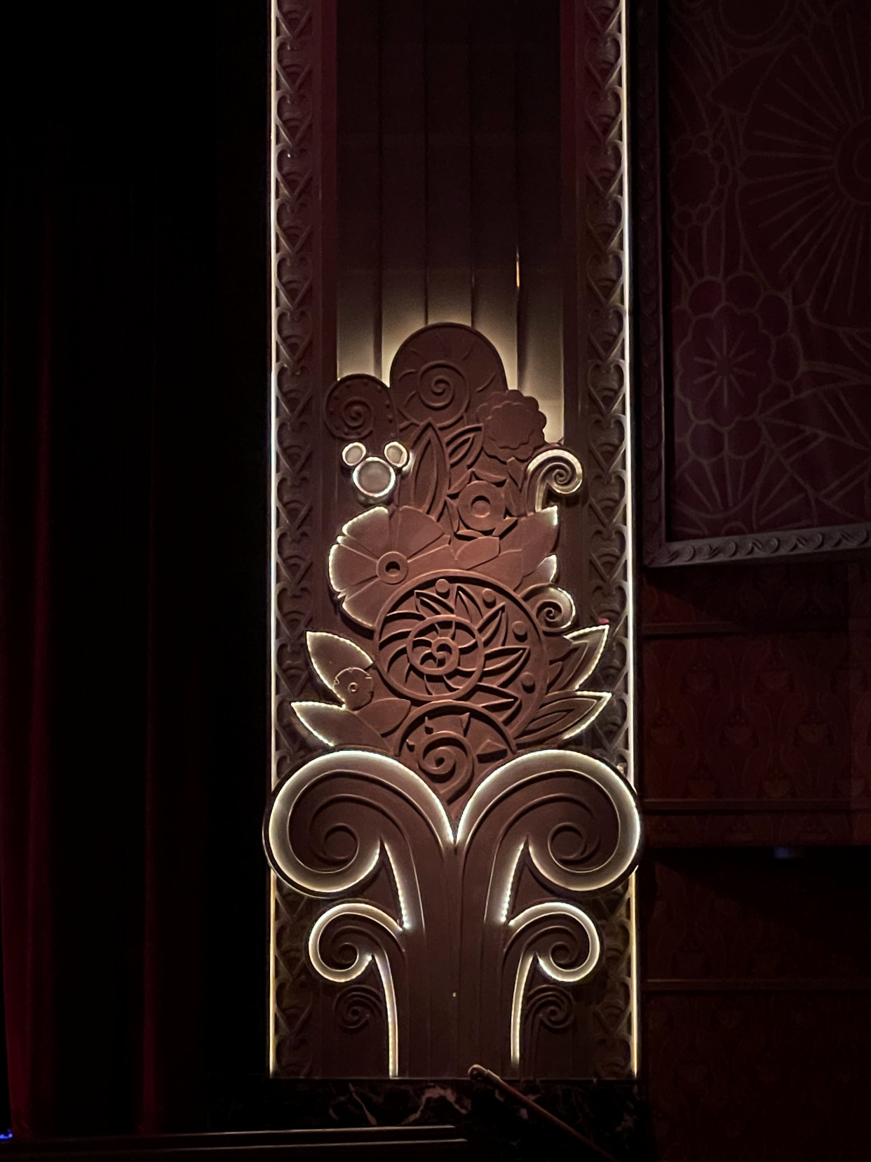 There are two dining times and because we had the later one, we went to the earlier show. The show on the first night was called Believe. Rather than having a different show each night, because the seating was physically distant, they did the two shows, Believe and Beauty and the Beast, two times while we were aboard. This show was absolutely amazing and definitely worth watching. I loved how they incorporated Disney songs throughout the entire show. I’m not saying it was a tear-jerker, but I may have shed a few tears. While we waited for the show to start, I also found some Hidden Mickeys inside the theatre.